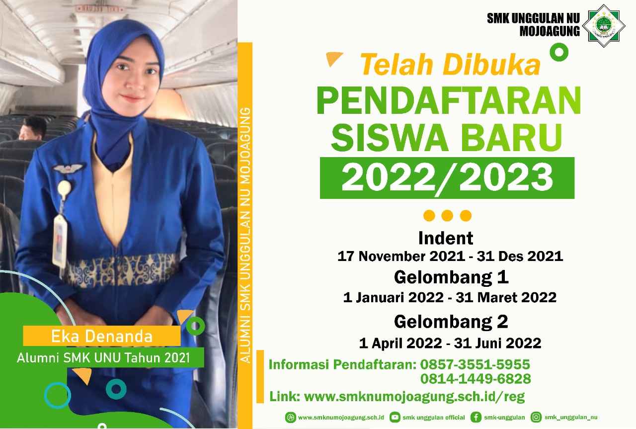 SMK Unggulan NU Mojoagung membuka pendaftaran peserta didik baru (PPDB) tahun ajaran 2022/2023 secara online.